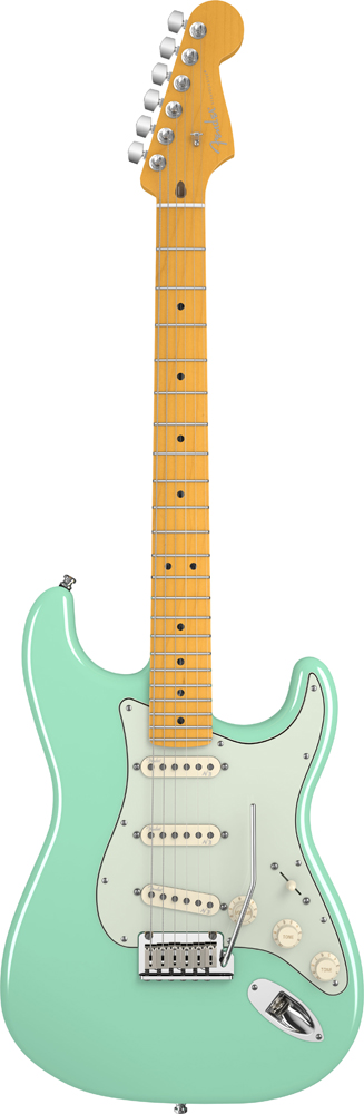 Tonalité, tradition et innovation. La nouvelle American Deluxe Stratocaster® de Fender rassemble toutes les caractéristiques contemporaines que recherchent les guitaristes actuels. La touche à radius composé permet une flexion sans effort des cordes en tout point du manche et les nouveaux micros pickups N3 Noiseless™ offrent des tonalités Stratocaster améliorées pour une sonorité limpide et claire sans bourdonnement. La commutation S-1™ reconfigurée offre d’autres options tonales caractéristiques ; à cela s’ajoutent des mécaniques à blocage décalées, un chevalet à trémolo American Deluxe synchronisé à deux points avec bras mobile et un talon de manche en biseau. Corps en aulne sélectionné Vernis du corps Urethane Manche vissé en érable Vernis du manche Satin Urethane Profile 'Modern C' Touche palissandre 22 frettes Medium Jumbo Diapason 25.5" Radius hybride (9.5"-14") Largeur au sillet 42.8mm 3 micros simple bobinage Fender Noiseless™ N3 Strat® Master Volume avec switch S-1 Tonalité 1. (Micro manche), tonalité 2. Contrôle de tonalité No-Load (Micros central et chevalet) Sélecteur 5 positions Chevalet Deluxe Synchronized Tremolo 2 points avec tige de vibrato auto-bloquante Mécaniques Deluxe auto-bloquantes Talon de jonction du manche retravaillé pour un meilleur accès aux aigus Cordes Fender Super Bullets® 3250L NPS (.009-.042) Straplocks Schaller® Livrée en étui moulé Fender ABS